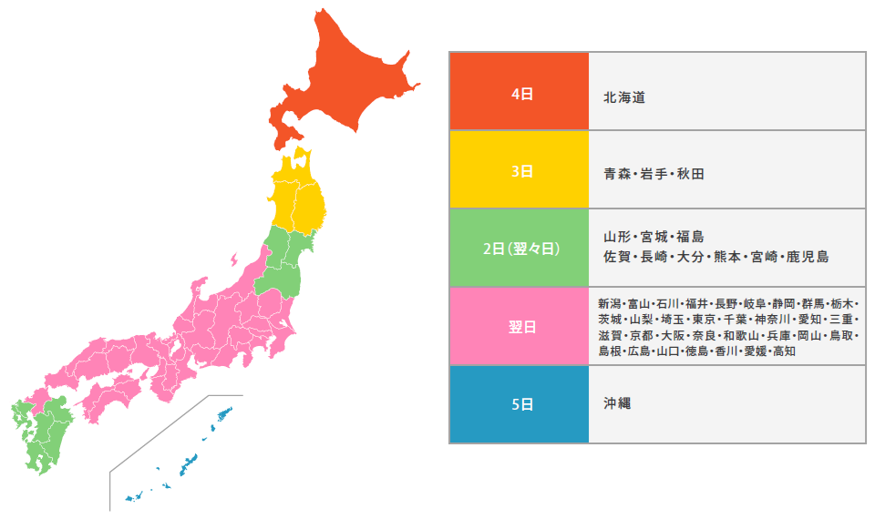 地域によって、出荷からお届けまでにかかる日数が異なります。