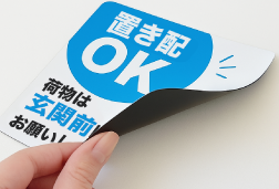 厚さ0.8mmのマグネットシート(等方性)に屋外でも仕様できる様に耐久性に優れた塩ビシート出力を貼り合わせて、紫外線対策としてUVラミを施しています。